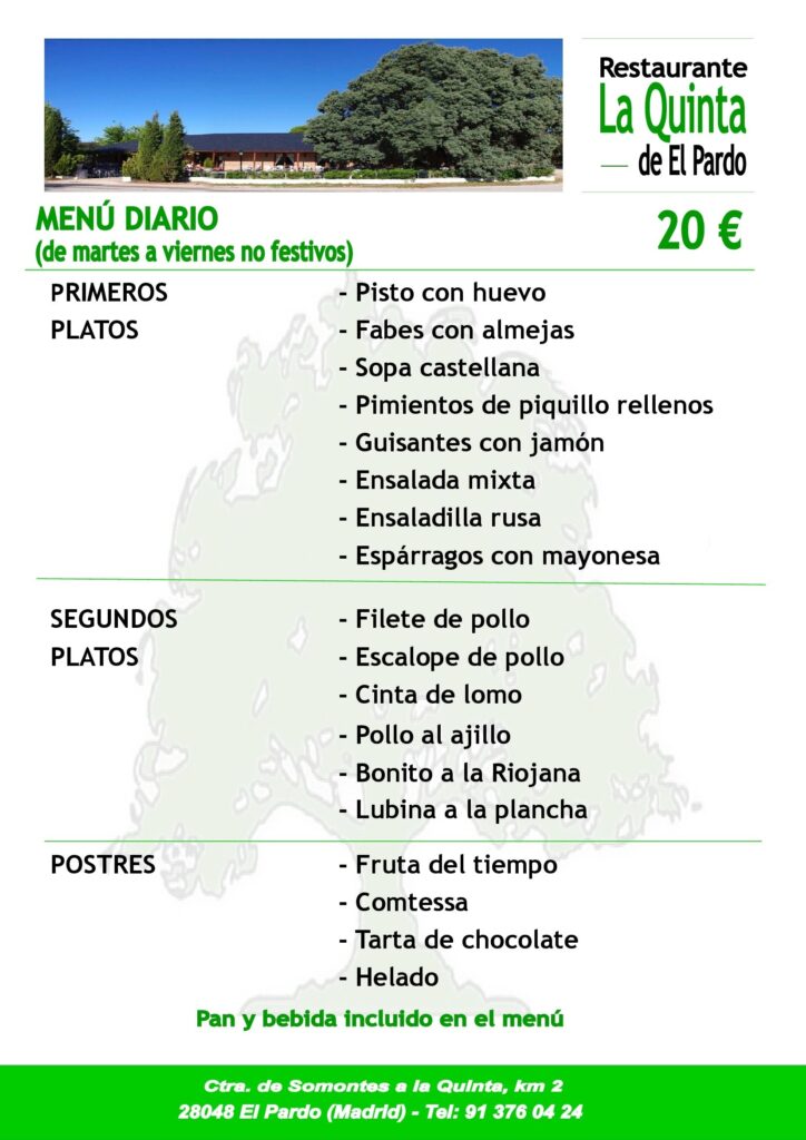 Disponemos de dos menús, del día (de martes a viernes no festivos) y especial. Aceptamos pago con tarjeta.