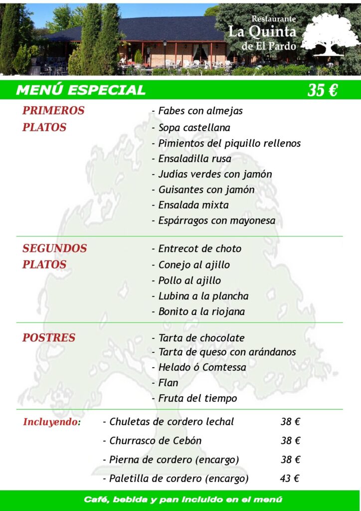 Nuestro Menú Especial ofrece nuestros platos estrella, como el Churrasco, el Entrecot, la Pierna de cordero lechal o las Chuletas de cordero lechal.